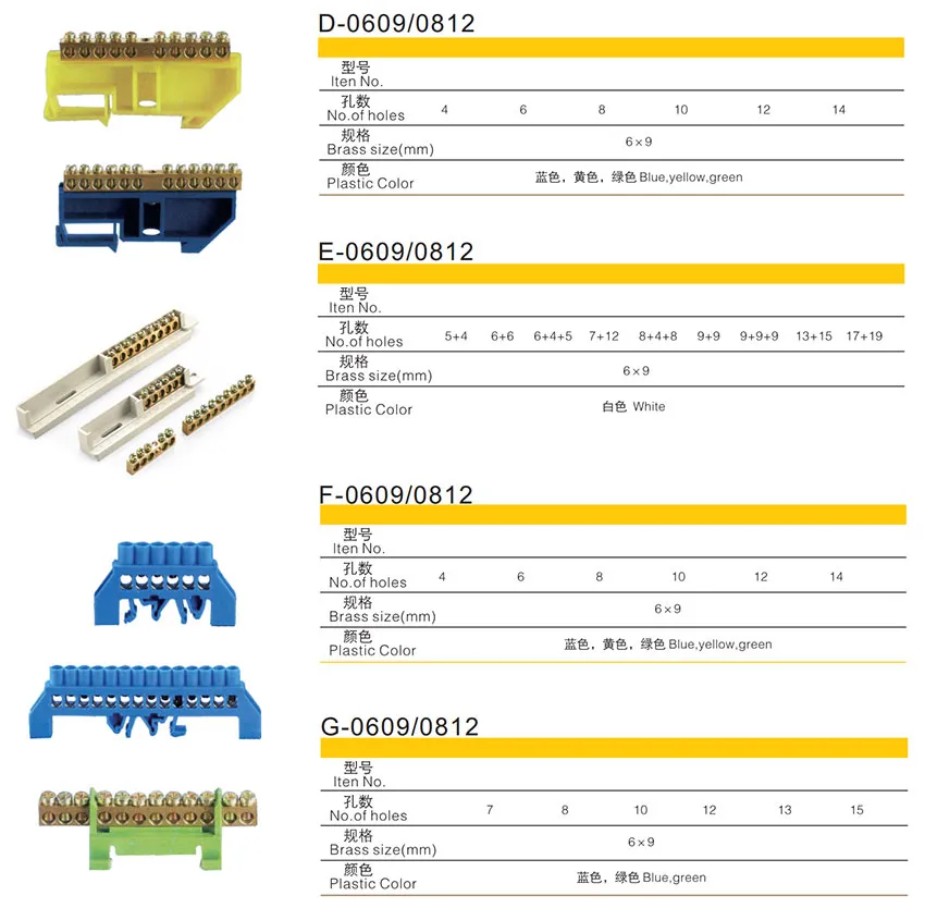 Neutral Bar L2025/S L2525/S and Earth Bar D2025/S D2525/S