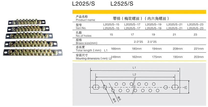 Neutral Bar L2025 L2525 and Earth Bar D2025 D2525