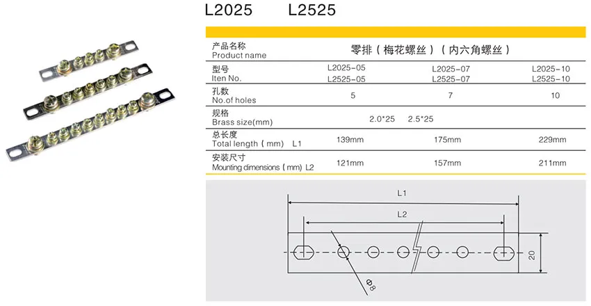 Neutral Bar L2025 L2525 and Earth Bar D2025 D2525