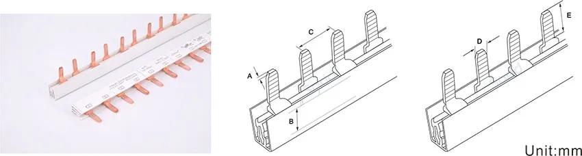 2.It can form the mixed busbar to match different type of MCBs with its different unit directly by end user,whereas it can only specially-made by the manufactory with different mould thus can solve the connection difficulties when the old busbar used.