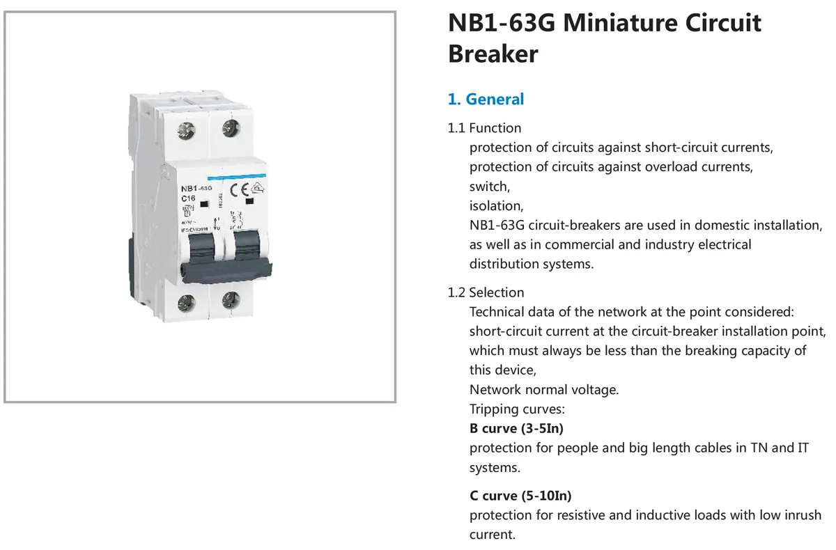 NB1-63G circuit-breakers are used in domestic installation,as well as in commercial and industry electrical distribution systems.