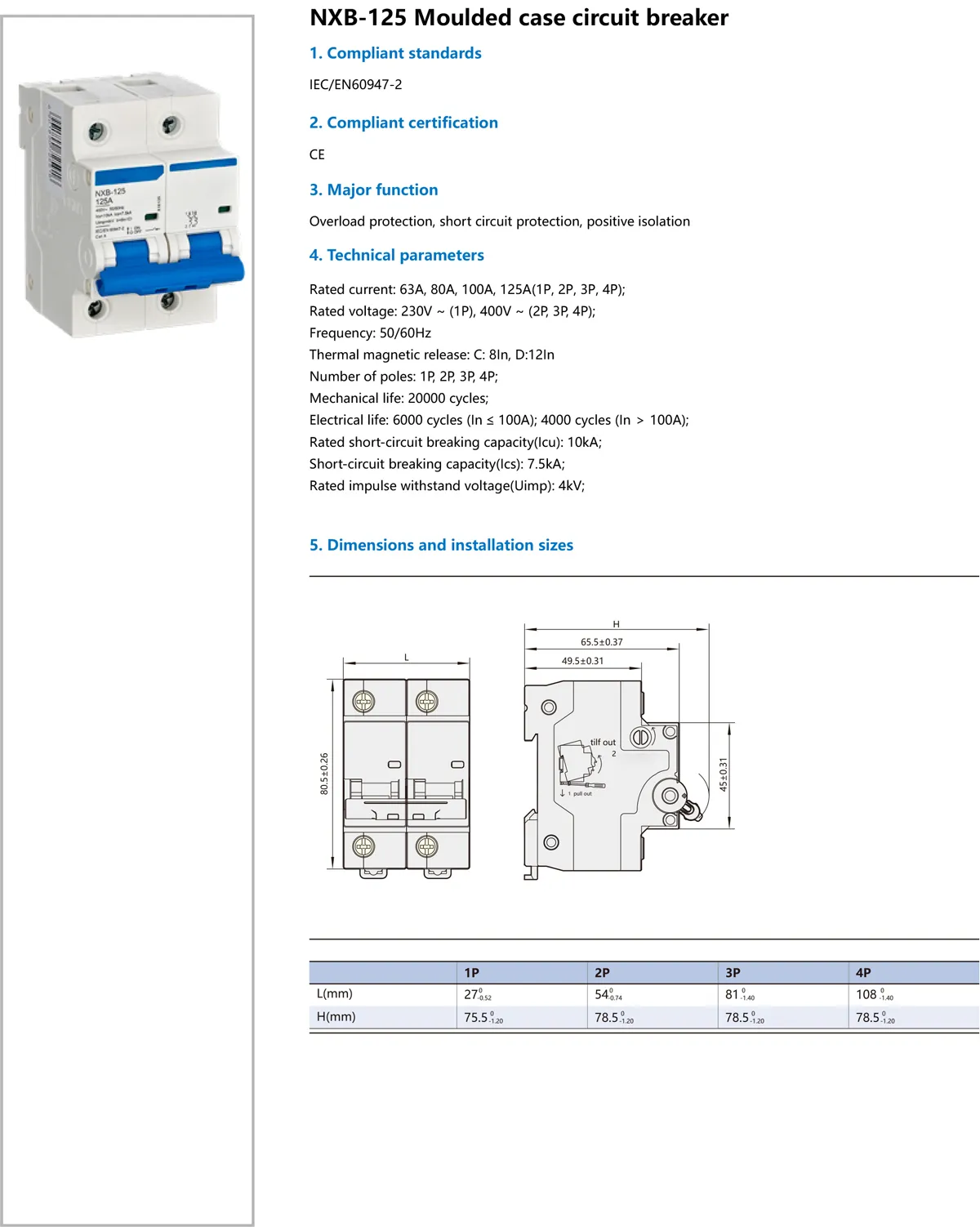 Rated current: 63A, 80A, 100A, 125A(1P, 2P, 3P, 4P);