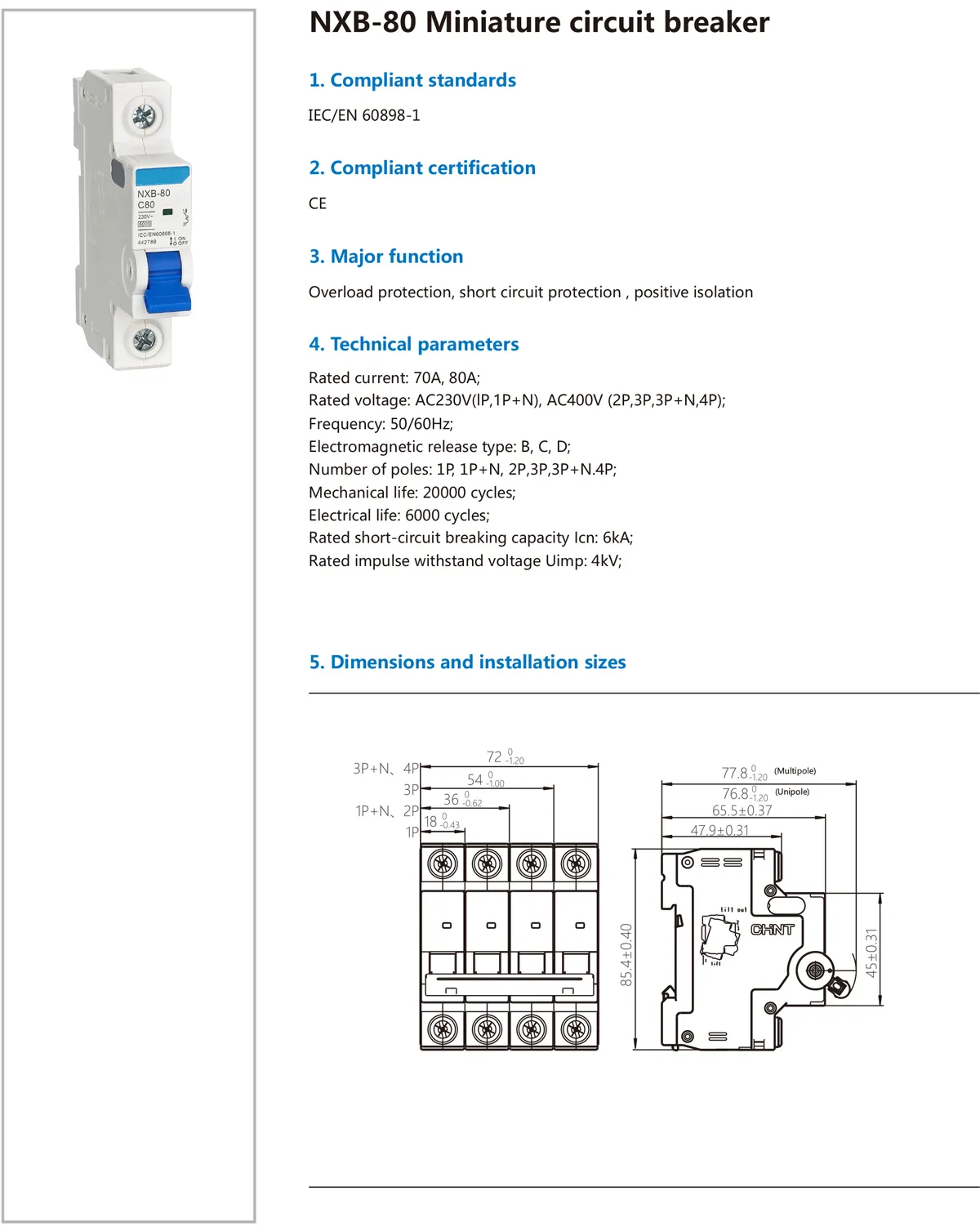 NXB-80 Miniature Circuit Breaker NXB-80 Miniature Circuit Breaker NXB-80 Miniature Circuit Breaker NXB-80 Miniature Circuit Breaker