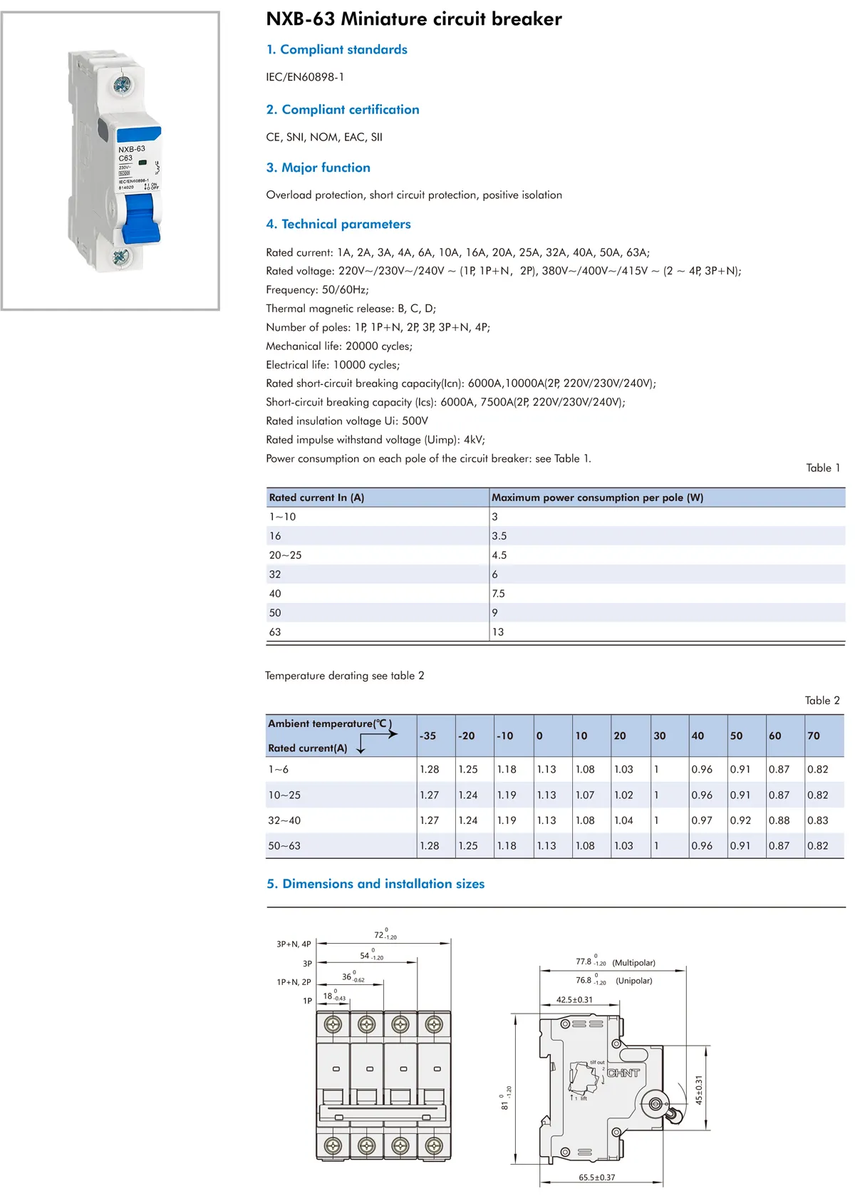 Overload protection, short circuit protection and isolation. It is widely used in building power distribution, industrial power distribution, as well as control and protection for a variety of equipment with operating current not exceeding 63A.