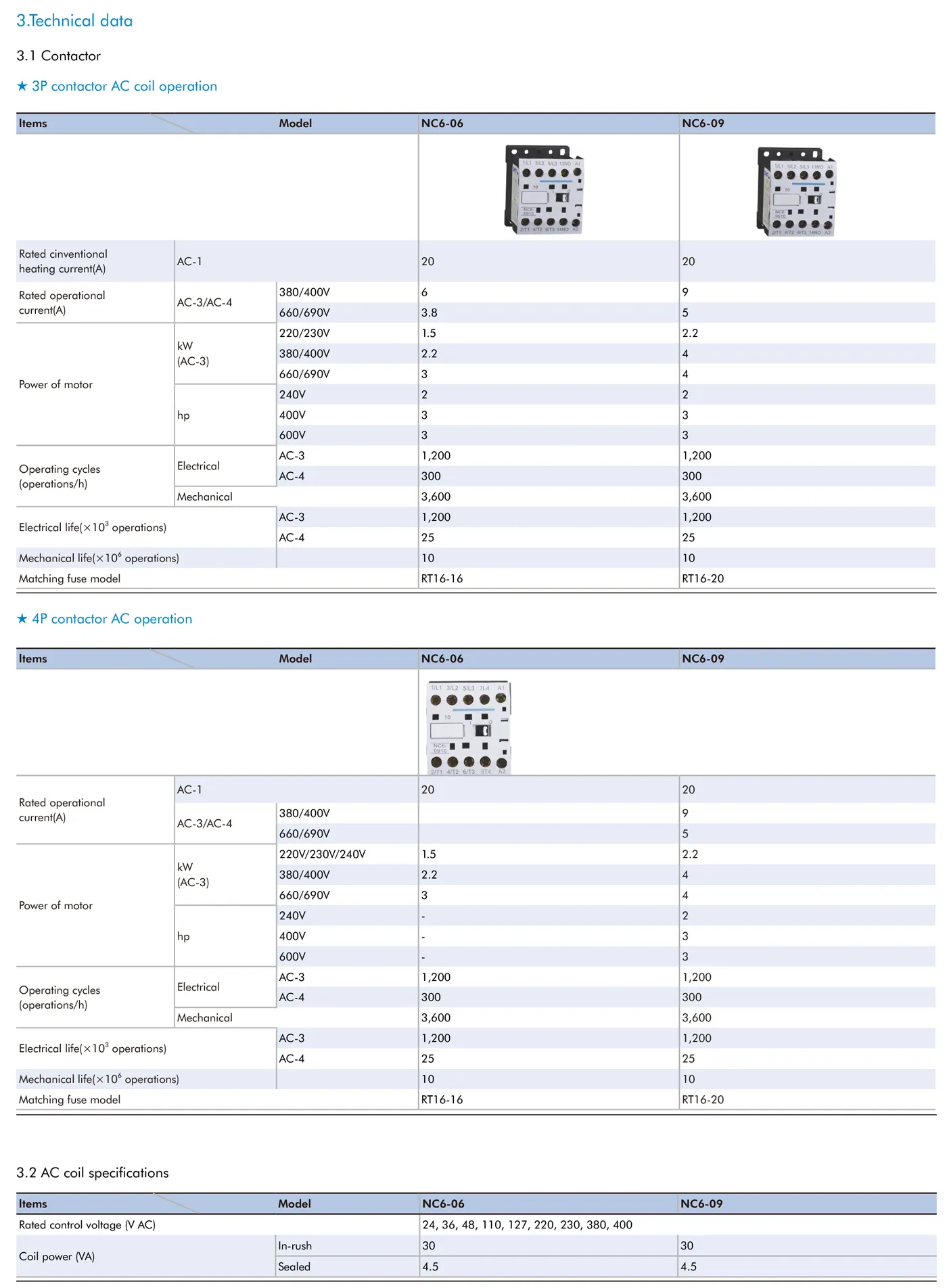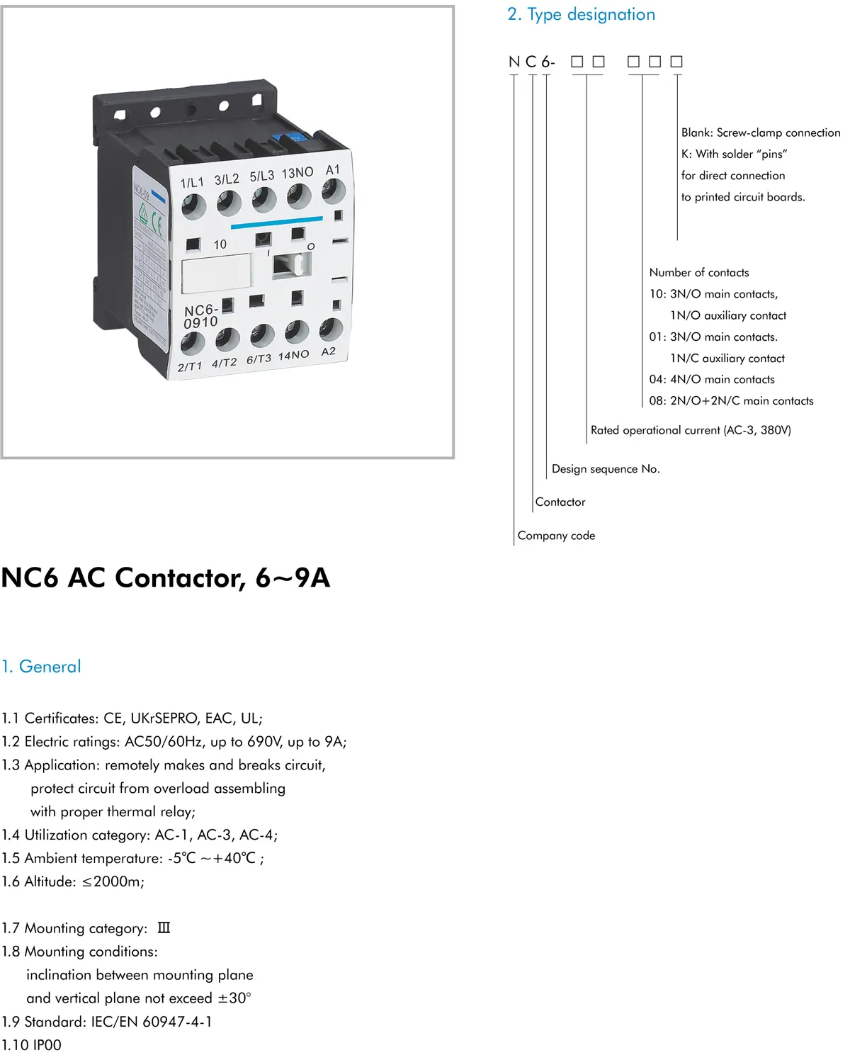 1.2 Electric ratings: AC50/60Hz, up to 690V, up to 9A;