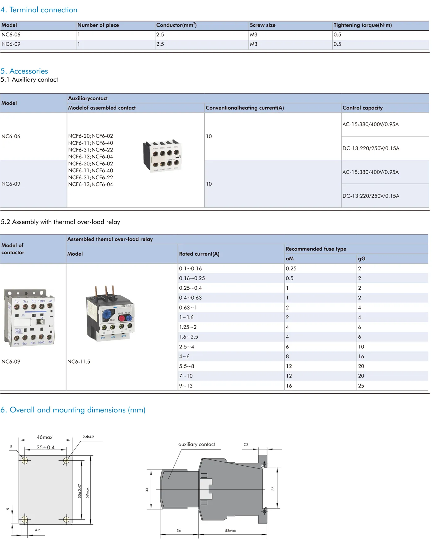 NC6 AC Contactor, 6~9A